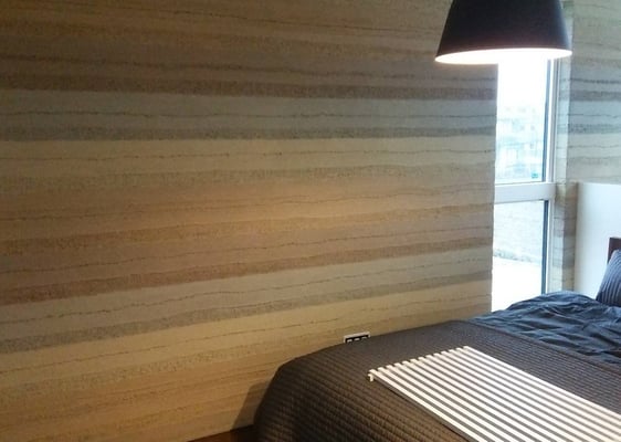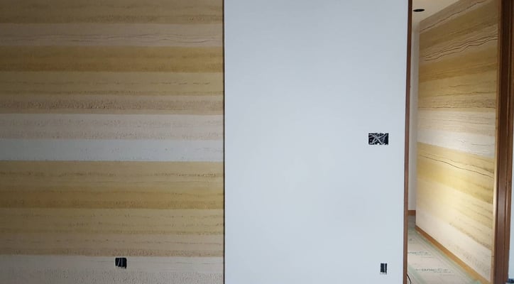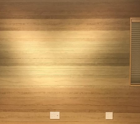 【スタッコフレックス】の【塗り版築】では、コテを使って【版築】の特徴ある土の層を表現するだけではなく、高い自由度で色合い、パターンを選ぶことができ、重厚かつ高級感のある、オンリーワンの空間を演出することができます。